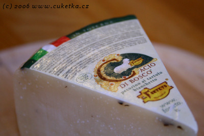 Jedná se o tvrdý ovčí sýr typu Pecorino Toscano s kousky lanýžů. Ty lanýže jsou tzv. tartufo bianchetto což jsou lanýže jarní. To je tak asi vše co jsem o tomhle sýru zjiztil, protože stánky firmy Il Forteto jsou pouze v italštině (němčinu nepočítám jako jazyk ;)