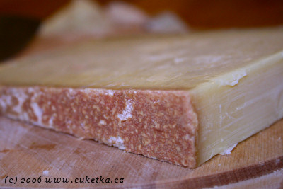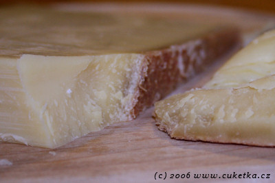 Na závěr asi největší lahůdka – král švýcarských sýrů (podle pana C.) Le Gruyère! Je to tvrdý sýr z plnotučného nepasterizovaného kravského mléka, který se vyrábí ve velkých 35kg bochnících. Běžné verze zrají cca 3-4 měsíce, tady tahle verze zrála 3 měsíce v sýrárně a potom ještě 9 měsíců v jeskyni Kaltbach (zrají tam i sýry Emmentaler a Raclette).
