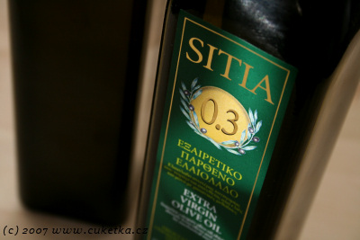 Potvrzuji, že olej Sitia, kterýžto mi byl laskavým panem C. darován za třetí místo v jeho receptové soutěži, je opravdu skvělý. Tajně si na něj chodím do spíže a už mám sotva na dně…