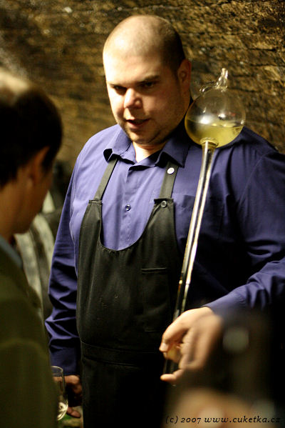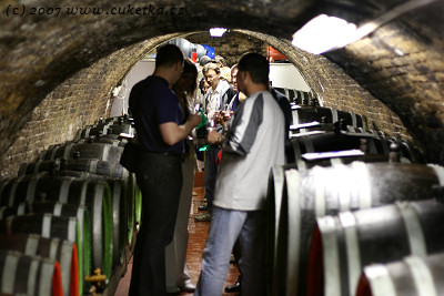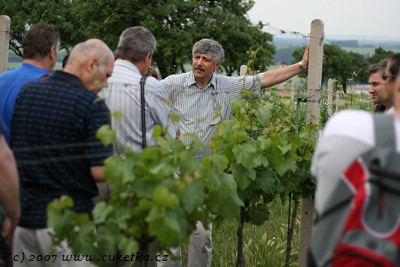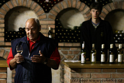 Průvodcem nám byl vinař osobně – Vlastimil Černý. Ten obstaral vynikající teoretický základ do technologie výroby vín obohacený o podrobné prošmejdění vinného sklepa s výkladem a ochutnávku nenalahvovaných vín přímo ze sudů.