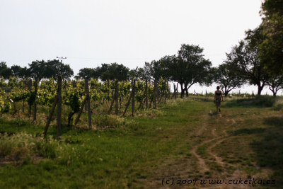 Pro mne nejpříjemnější část kurzu, totiž terénní cvičení! ;) Po velice hutné nalejvárně se zaměřením na všechny aspekty pěstění magických bobulí jsme se s panem Ing. Osičkou vydali na školní vinici SVIŠV. Tady geniální stavba (Rajsna, Rajstna), kterou nám po sobě (nedobrovolně) nechali Lichtenštejni. Je zní nádherný výhled na Valtice, na okolní vinohrady a do Rakous.