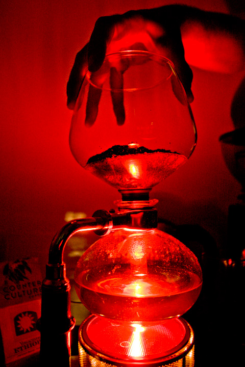 Ten nejkrásnější a nejlaboratornější kávový rituál, který může kávomilec doma provést. Opět ale platí, že vac pot není běžně v ČR k dostání a není to levná záležitost, přidávám tedy do výčtu hlavně pro zajímavost a pro estetickou hodnotu.Příprava: Do spodní baňky vpravte už vroucí vodu, usaďte na hrdlo horní část se zabroušenou zátkou a vsypte kávu. Pod spodní částí zažehněte zdroj tepla (kahan nebo pekelně efektní infra zářič) a sledujte, co se bude dít – voda přetlakem vystoupá do horní části, a smíchá se s kávou. Zde nechte propařit a vyextrahovat. Odstraňte zdroj tepla. Ve spodní části začne vznikat podtlak a káva se přes papírový či bavlněný filtr přefiltruje během pár okamžiků zpátky dolů. Horní baňku s kávovou sedlinou odstraňte a kávu servírujte.
