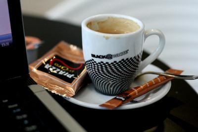 to Foxy: mně káva v Ruzyni nechutná proto, že stojí 3× tolik co na jiných letištích, piju jí v úplně prázdné kavárně pod dohledem ne-uplně-dobře probuzeného pána a říkám si, kdo to takhle vymyslel, to musel být ale myslitel…