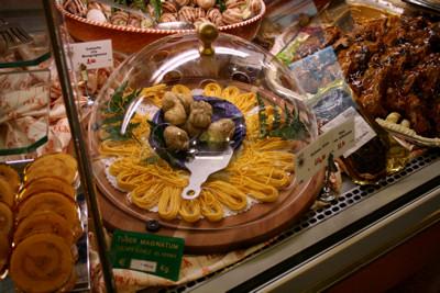 Z nabídky i z cen se mi brzy začala motati hlavička, proto jsme návštěvu po chvilce ukončili taktickým ústupem. Lanýžům v ceně 9800€/kg jsem odolal a proto se naše igelitky skromně dmuly necelým kilem parmezánu a pytlíkem kaštanů.