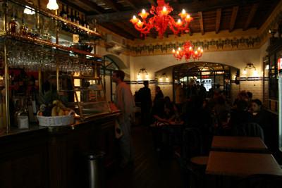 Nakonec vlastně jen café či bistro, protože hlavní podnik měl ještě zavřeno. Možná to ale bylo dobře. Zažili jsme totiž unikátní stravovací smršť v italském stylu za malé peníze.