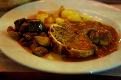 Tohle byla ale naprostá bomba! Polpettone di vitello casereccio all'ortolana con funghi porcini. Zjednodušeně dva řezy hutné sekané v listovém těstě s hříbkovou omáčkou. Až budu mít čas, odhaliiiim!!! ,)