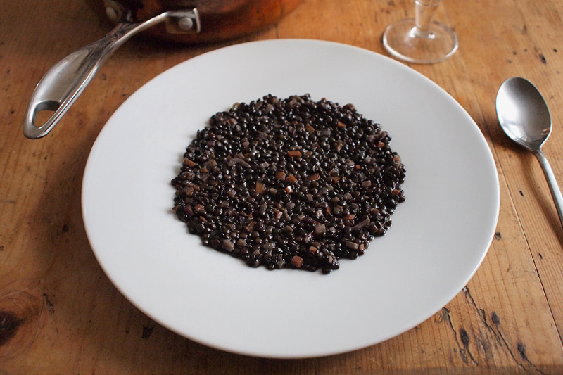 Minulý týden mě dostala tahle drobná černá čočka. Oproti běžné čočce snese hrubší zacházení, je rychle hotová a po tepelné úpravě výtečně drží tvar. A co je nejlepší — můžete s ní provádět podobná kouzla jako s rýží na risotto.