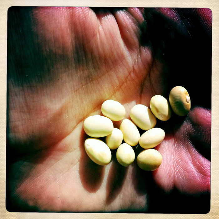 Druhý výsev už jsem tedy nepodcenil. Na fazole jsem vybral několik větších nádob (nad 10 litrů, zajistil si dost substrátu (mix zahradního, bylinkového a lehkého výsevního) i drenáž na dno (písek, úlomky květináčů). Taky jsem vykoumal, kam nádoby postavím a na co nechám fazole pnout (na mřížku!). Z cesty do Florencie jsem měl malé fazolky Zolfini z trhu, zbytek jsem dokoupil v zahradnictví. Pak už jen trocha plazení po čtyřech, jedny kalhoty od hlíny a dvě majznutí kladívkem do palce.