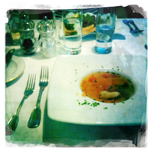 Devadesátkový oldskůl jak řemen. Včetně kuvéru za čtyřicet, jídla na zvlněných talířích do čtverce i kudrlinkových nonsens názvů. Na začátku nás dobře naladilo „tomatové consommé“ s čirým a silným vývarem obohaceným o vůni rajčat i uzený pstruh s křenovou remuládou a listovým salátem. U hlavních chodů ale vypadli z tempa. Filé z candáta potrápili příliš dlouho a nebylo dostatečně ochucené. K naopak povedeným a šťavnatým medailonkům z telecího pro změnu zpackali šafránové risotto s úplně rozvařenou rýží a stejně unavenou mrkví a špenátem na straně.