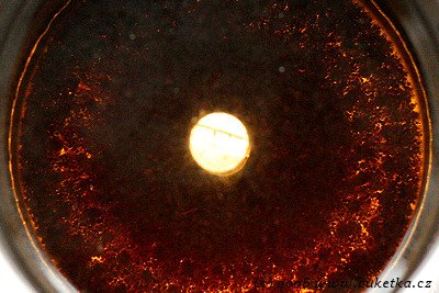 odraz žárovky (promiň Štěpáne…) v plecháčku s čajem.