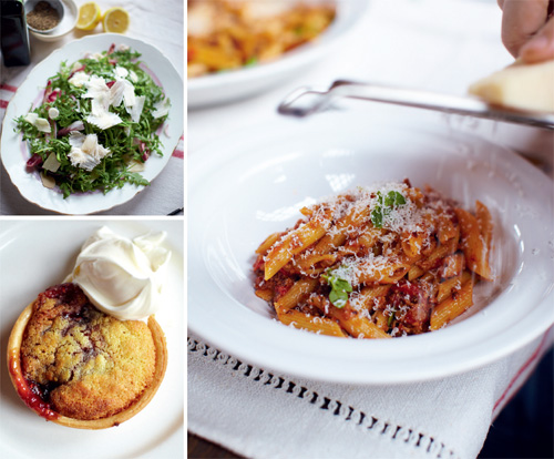 Do kuchařky se podařilo vtěsnat 50 kompletních menu. Každé obsahuje tři nebo čtyři chody a ještě doporučení, jak jídlo servírovat a které nápoje s jídlem párovat.