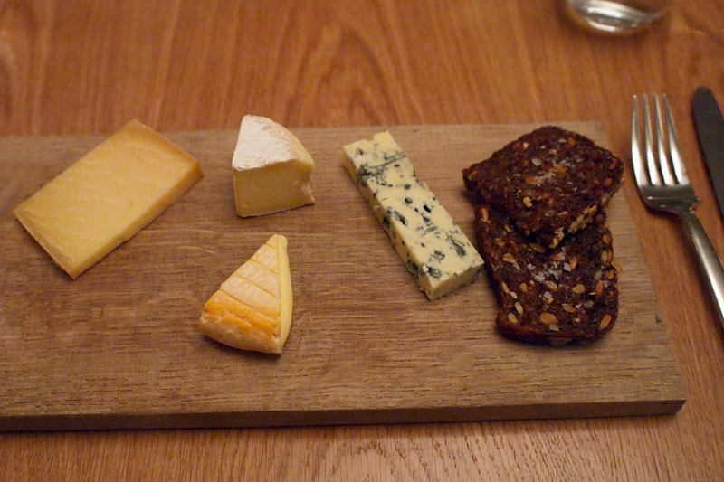 Na dobrou noc a vytrávení specialita — první dánské sýry z experimentálního programu na výrobu sýrů z nepasterizovaného mléka. Číšník se nám je pokoušel pojmenovat, ale nakonec jsme to stejně vzdali a sýry z posledních sil vstřebali.
