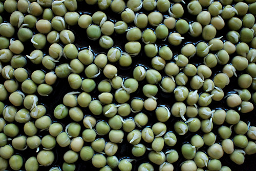 U nás ještě trochu jinak: hrách/mungo/cizrnu propláchnout a dát po Petriho misky jen s tou vodou, co na nich ulpěla. Zakrýt druhou Petriho miskou a nechat svému osudu. Dvakrát denně proplachovat. Konzumovat v preferovaném stadiu naklíčenosti.