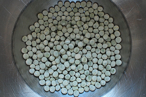 Krok jedna je vyděsit se nad tím, jak těžké je sehnat pěkné české lušteniny a tady konkrétně nepůlený zelený hrách. Jakmile ho už ale máte, je to brnkačka.