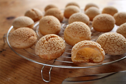 Kouzlo kulatých bochánků s rozpraskaným povrchem spočívá s kombinaci odpalovaného těsta s křupavou krustičkou. První komponenta se krásně nafoukne a díky vysokému obsahu vajec a tepelně upravené mouce zůstane krásně dutá. Druhá část ztvrdne a rozpraská. Ve výsledku máte odpalované těsto vhodné k jakýmkoliv sladkým náplním (šlehačky, krémy), ale navíc ještě s atraktivním vzhledem křupavých kupolí.