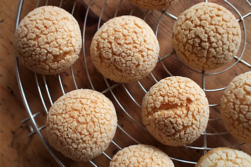 Jen, že první, co mi ty hotové popraskané „vintage“ kuličky připoměly, byl japonský Melonpan. :-) Jiné těsto, stejná technika. http://en.wikipedia.org/wiki/Melonpan