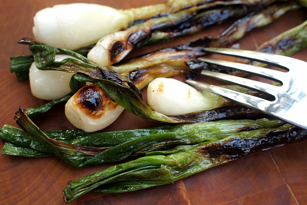 Grilované jarní cibulky mají potenciál lapnout vás jako bodlák a já sám ho mám na teplákách už asi dva roky! Poprvé jsem je viděl v jednom z dílů No Reservations. Bourdain je zrovna ve Španělsku, kde si dávají stohy cibule přímo na oheň. Pak je balí do novin, aby se zapařily a změkly. A nakonec je baští s výraznou omáčkou romesco.