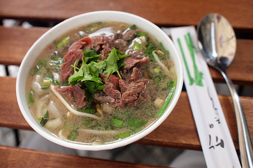 V Brně ve vietnamské tržnici ve Slatině na ulici Olomoucká – to je více méně jediný oficiálně používaný název – naleznete po pravé straně řadu mini vývařoven, některé se specializují jen na phó, ke kterému však dostanete ještě talíř natrhaných salátových listů, asijských bylinek, měsíčků citronů a limetek.