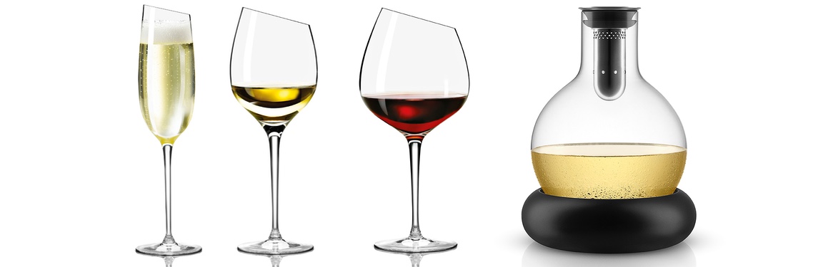 Krásné vinné sklo dělá ale i značka Eva Solo. Mají moc povedenou řadu sklenic, karafy, dekantéry i vinné náčiní. Pokud hledáte ve víně něco moderního, tak to Eva Solo splňuje dokonale.