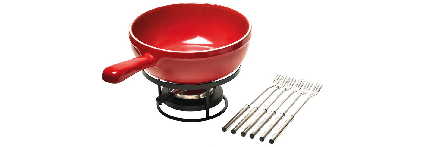 Vysoce dárková záležitost! Keramický set na fondue Emile Henry. Nic víc na fondue nepotřebujete. Ohřívač, hrnec s uchem z odolné keramiky Flame a napichovátka. Zima může klidně přijít!