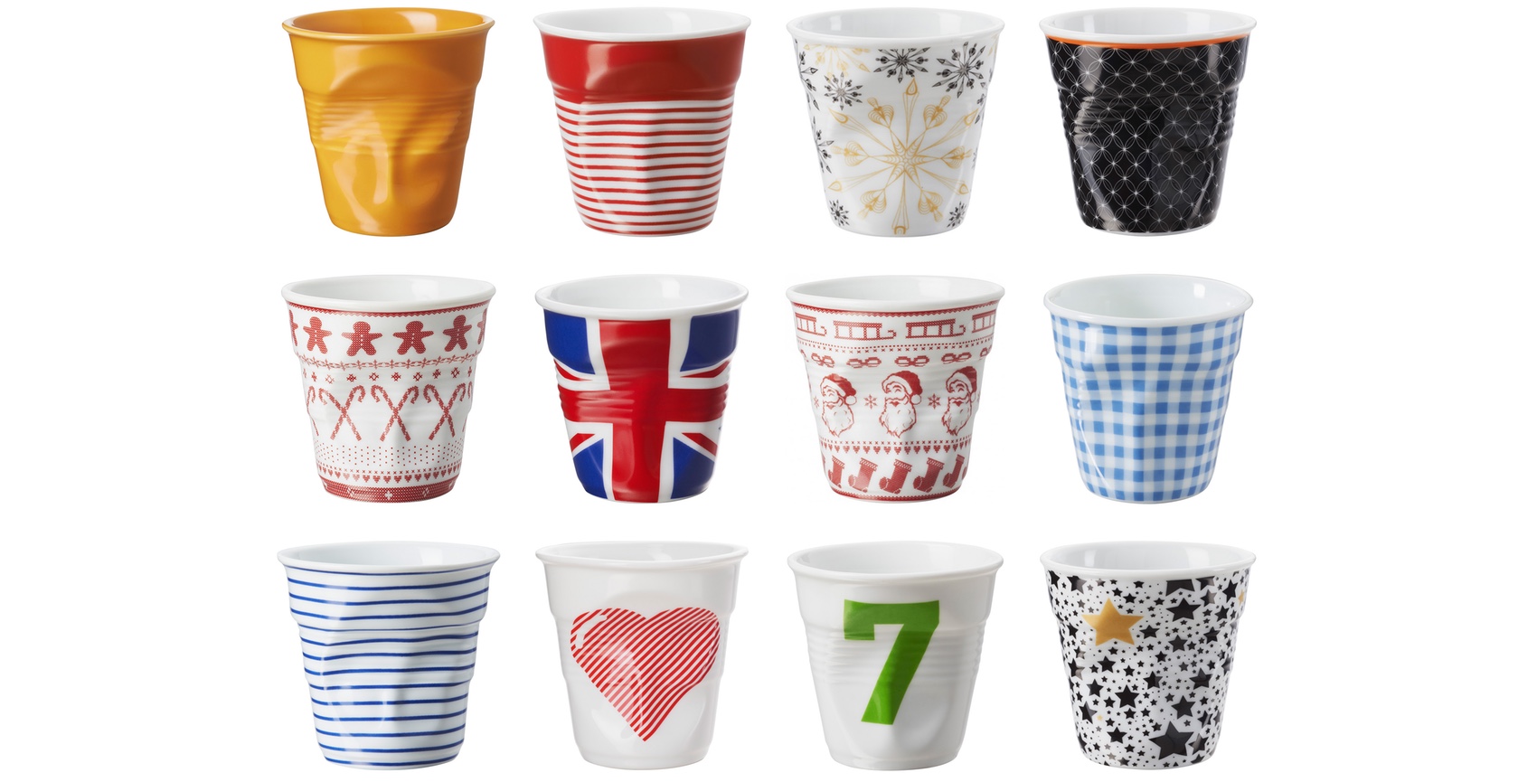 Revol je známý i "pomačkanými" kelímky Froissés na espresso v nespočtu barev a dekorů. Kulina teď navíc nabízí i dárkové sady, což je šikovný menší dárek.