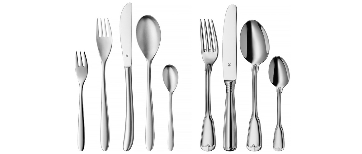 V sadách příborů kraluje značka WMF a v nabídce Kuliny od nich najdete spoustu krásných sad. Vybírejte spíš podle velikosti. Nejpraktičtější jsou určitě základní sady s 24 příbory (6 x nůž, vidlička, lžíce a lžička). Nezdá se to, ale když vezmete kvalitní příbor do ruky, rozdíl je fakt velký. Materiál, design, vyvážení – a zážitek ze stolování je hned o stupeň výše.