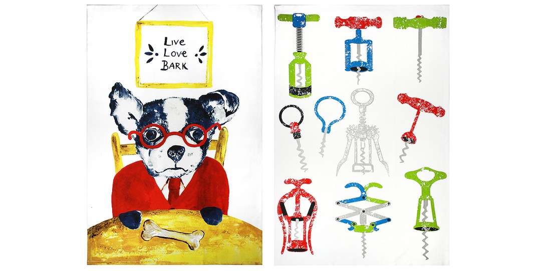 Drobný dárek pro zlepšení nálady? Tyhle krásné utěrky, zástěry a chňapky s potiskem. A utěrku s brejlatým psíkem asi velmi nutně potřebuji!