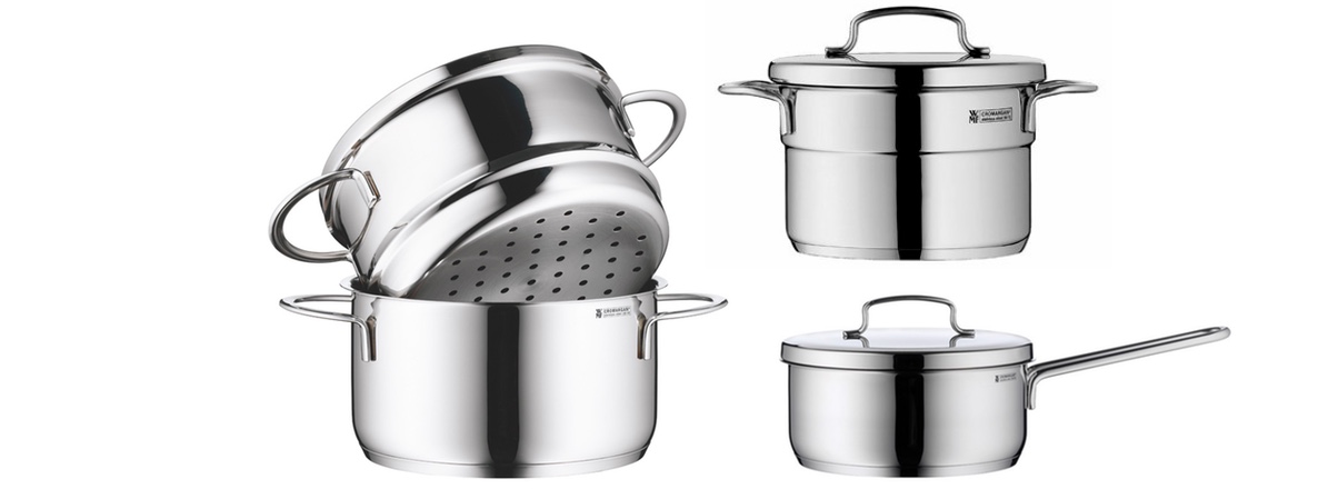 Vaření v tlakáči je často opomíjené a sám moc netuším proč. Snad je to jen fóbie z první generace papiňáků, které občas hrozily výbuchem a nepracovalo se s nimi zrovna nejlíp. Kulina nabízí moderní tlakové hrnce od WMF. Mám je vyzkoušené a pracuje se s nimi ohromně snadno. Pokud budete vybírat, zvažte nákup setu s dvěma velikostmi. U tlakového hrnce je to dost praktické a přesný objem podle množství jídla ještě víc zkrátí dobu přípravy.